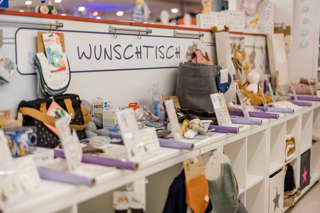 Nachwuchs in Sicht? – Welche Freude! – Vor allem, wenn man noch ganz viel Erstausstattung braucht, sind unsere Wunschtische perfekt für alle werdenden Eltern. Nützliches und Schönes zusammenstellen, Verwandten und Freunden Bescheid geben und beschenken lassen. In der Babywelt im UG gibt es von A wie Autositz bis Z wie Zahnputzbecher einfach alles, was man für sein Baby braucht. Und nebenan bei LuckyOne gibt es noch die passende Babykleidung für jedes Alter.