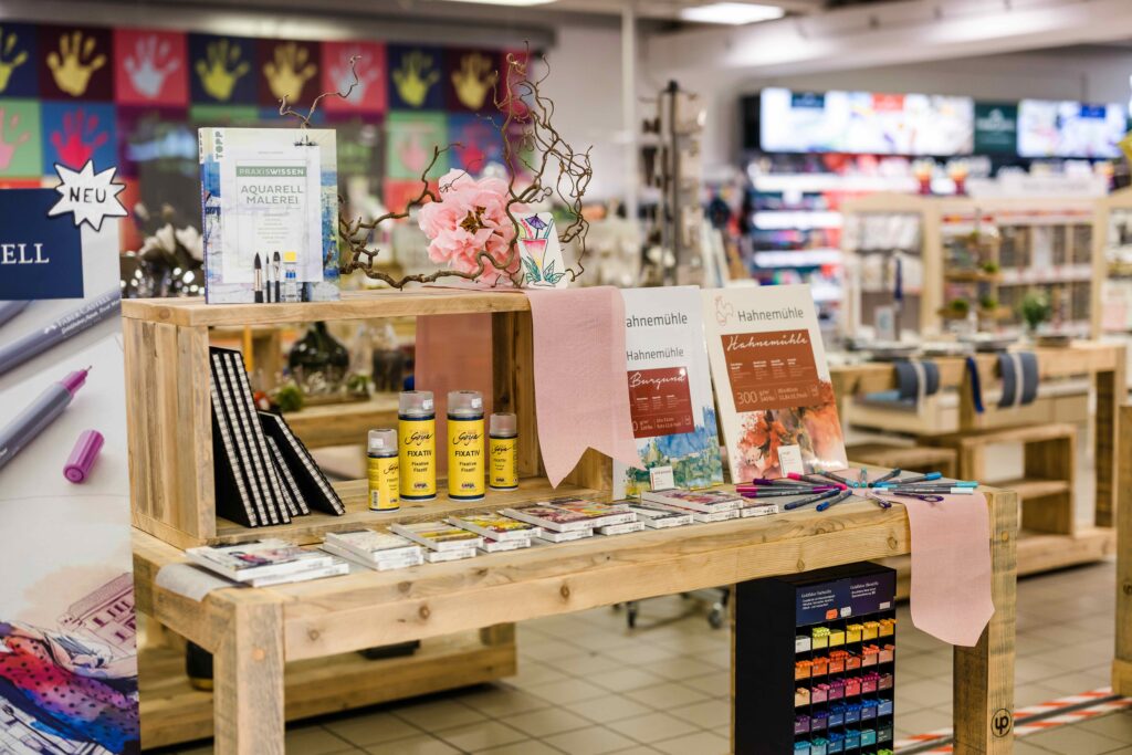 Du findest bei uns alles, was du für dein kreatives Hobby brauchst. Unser Sortiment umfasst zahlreiche Mal-, Zeichen- und Künstlerartikel, Party- und Tischdekoration, Kurzwaren, Wolle und vieles mehr. Von den neuesten Trends bis zu den Klassikern wie Beton, Modelliermassen, Schnullerketten Zubehör oder sogar Modellbau steht für euch alles auf der Fläche bereit. Ihr seid gar nicht so kreativ? Dann lasst euch von den zahlreichen Bastel-, Strick- oder Häkelbüchern inspirieren und anleiten! Und damit ihr euch in unserem großen Store zurechtfindet, steht euch unser nettes, kompetentes, bastelbegeistertes Team zur Seite.