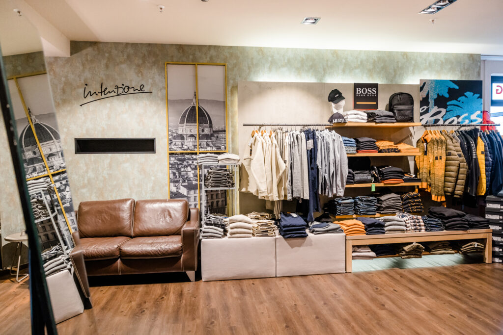 Intenzione steht für Lebensgefühl, das sich auch in den Marken widerspiegelt. Angebotene Marken sind Armani, Belstaff, Blauer, Boss, Calvin Klein, Copenhagen, DEUS, Drykorn, Grace, GANT, Lacoste, Olymp, POLO Ralph Laurent, Replay, Superdry.